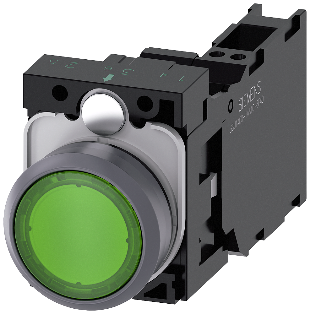 Illuminated pushbutton, 22 mm, round, plastic with metal front ring, green