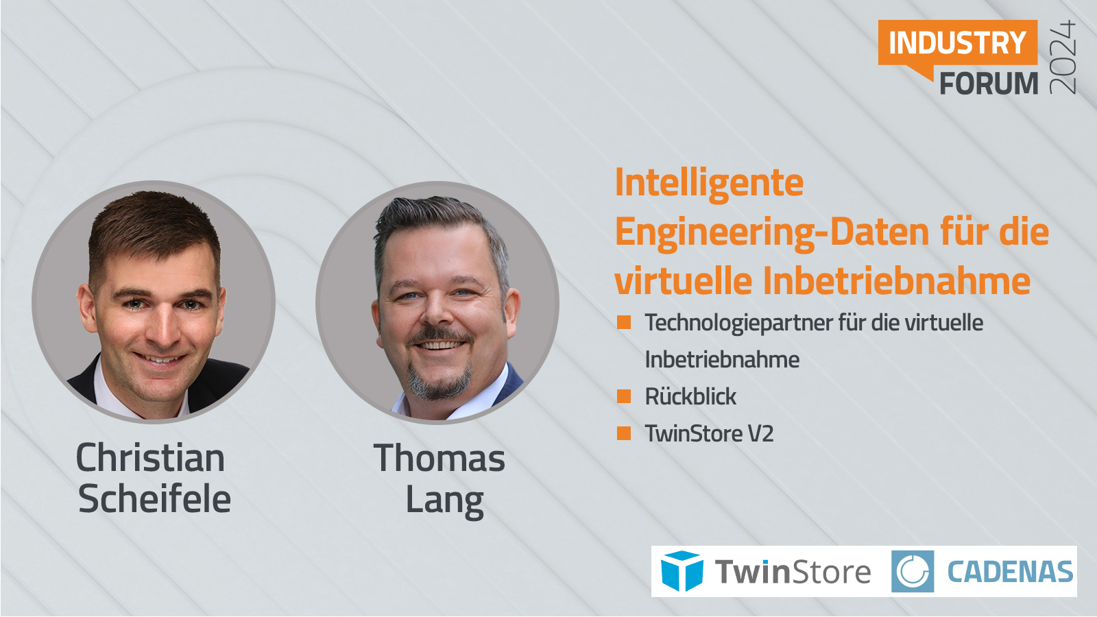 At the 22nd Industry Forum in the WWK Arena in Augsburg, Christian Scheifele and Thomas Lang will present their paper "Intelligent engineering data for virtual commissioning".