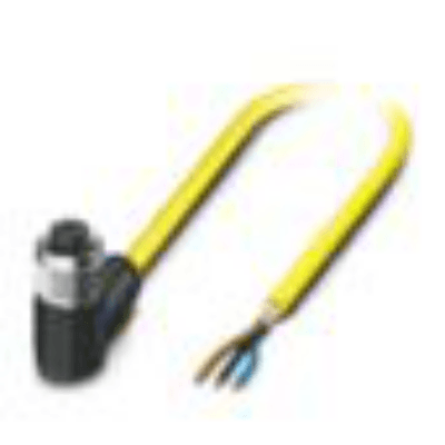 Sensor/actuator cable, 3-position, PVC, yellow, shielded, free cable end, on Socket angled M12, coding: A, cable length: 2 m