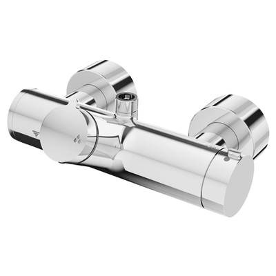 Exposed shower tap VITUS VD open/close-T / o, Mixed water, Thermostat, Open/Closed, 2 Backflow preventer, 2x DN 15 G 1/2 AG, DN 15 G 1/2 AG (top), Chrome