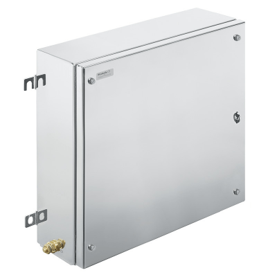 金属外壳, 宽度: 406 mm, 高度: 406 mm, 深: 150 mm, 电解抛光, 法兰板: 是, 底部, 左侧, 右侧, 4 铰链和 M6 六角螺丝 SW10